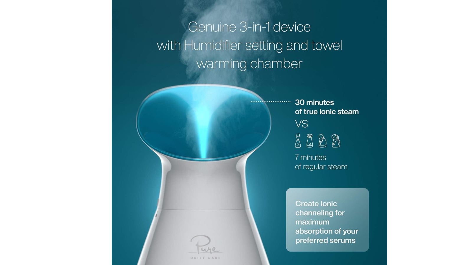 The NanoSteamer 3-in-1 Facial Steamer is designed to enhance at-home skincare routines by delivering warm nano-ionic steam that helps hydrate skin and open pores. Using advanced vapor technology, it produces fine steam particles that absorb more effectively than traditional steamers. The multifunction design supports facial steaming, room humidification, and steam-assisted blackhead preparation. Built with a stainless steel heating element and a compact tabletop format, it offers a convenient and reliable solution for maintaining healthy-looking skin from home.